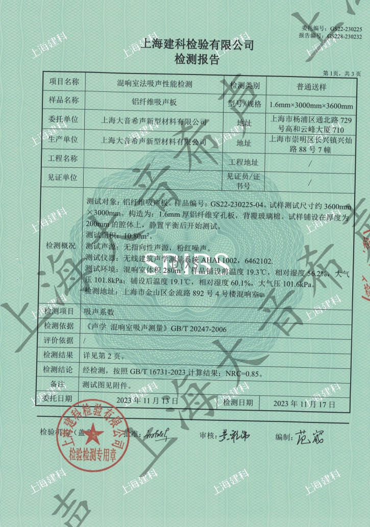 8、声学性能稳定,耐候性好,长期使用吸声系数变化很小。